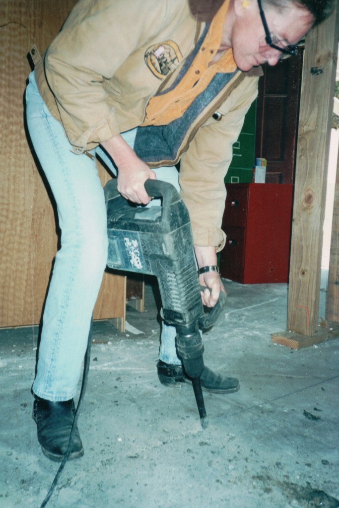 In those days, it wasn’t easy for women to get training (still isn’t). Carla learned the carpentry trade by reading. She told me she would just ask at the end of every day, “What are we doing tomorrow?” Then she would go home and open her carpentry books and the first thing the next morning she’d start throwing the terminology around. “So, we’re going to put the joists 16 inches on center, right. We’re going to start with the header joist.” She was assigned to be crew boss because she was the one who consistently showed up on time.