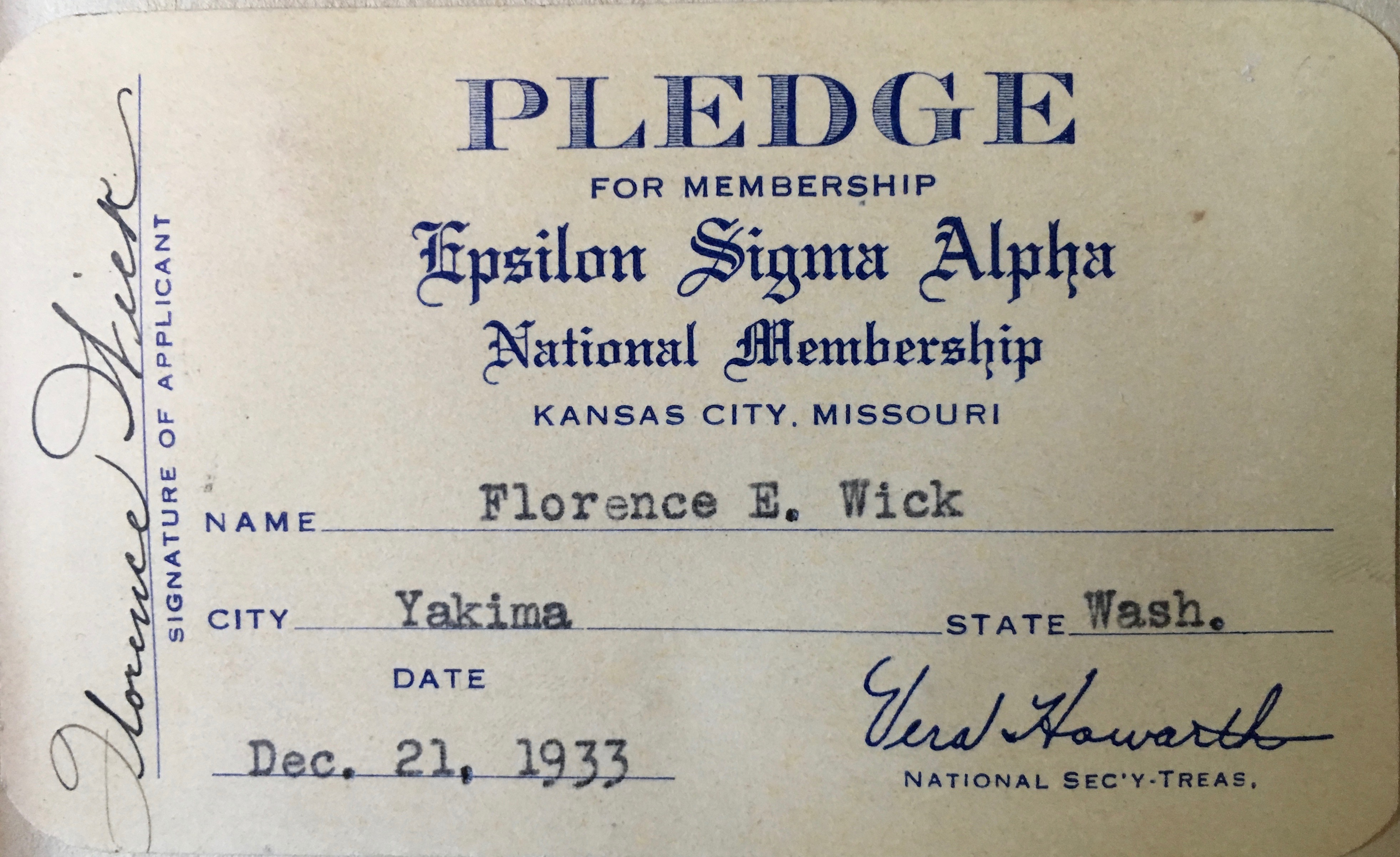 Smart cotton frocks of today’s vogue and demure fashions of 50 years ago vied for supremacy last evening when Epsilon Sigma Alpha sorority members entertained at a dessert bridge party in the Woman’s Century clubhouse. The sorority will have a horseback riding party as a feature of its next meeting, reported the local Yakima newspaper. In news articles the married women are referred to by their husbands’ names. A dinner and theater party were planned by sorority members at their meeting last evening in the home of Mrs. Malcolm Mays.