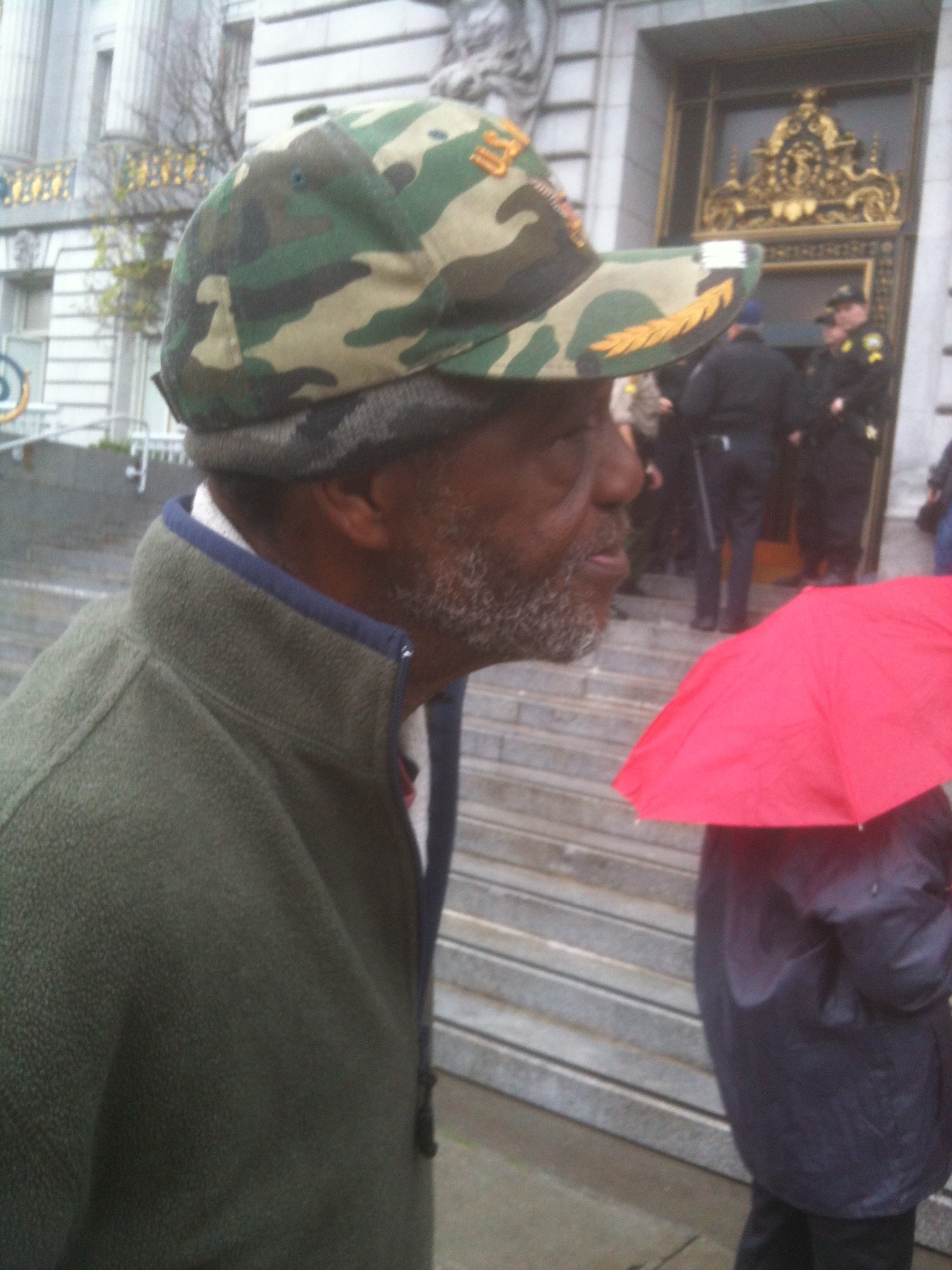 Two days later I got a call from an ACCE volunteer. One of the foreclosed homeowners, 75-year-old cancer survivor and childcare provider Josephine Tolbert, had been locked out of her house while she was shopping. Still inside her house were diabetes medication, diapers for the child in her care, essentially everything she owned. An impromptu press conference was being called for the following morning at her house in Visitacion Valley.