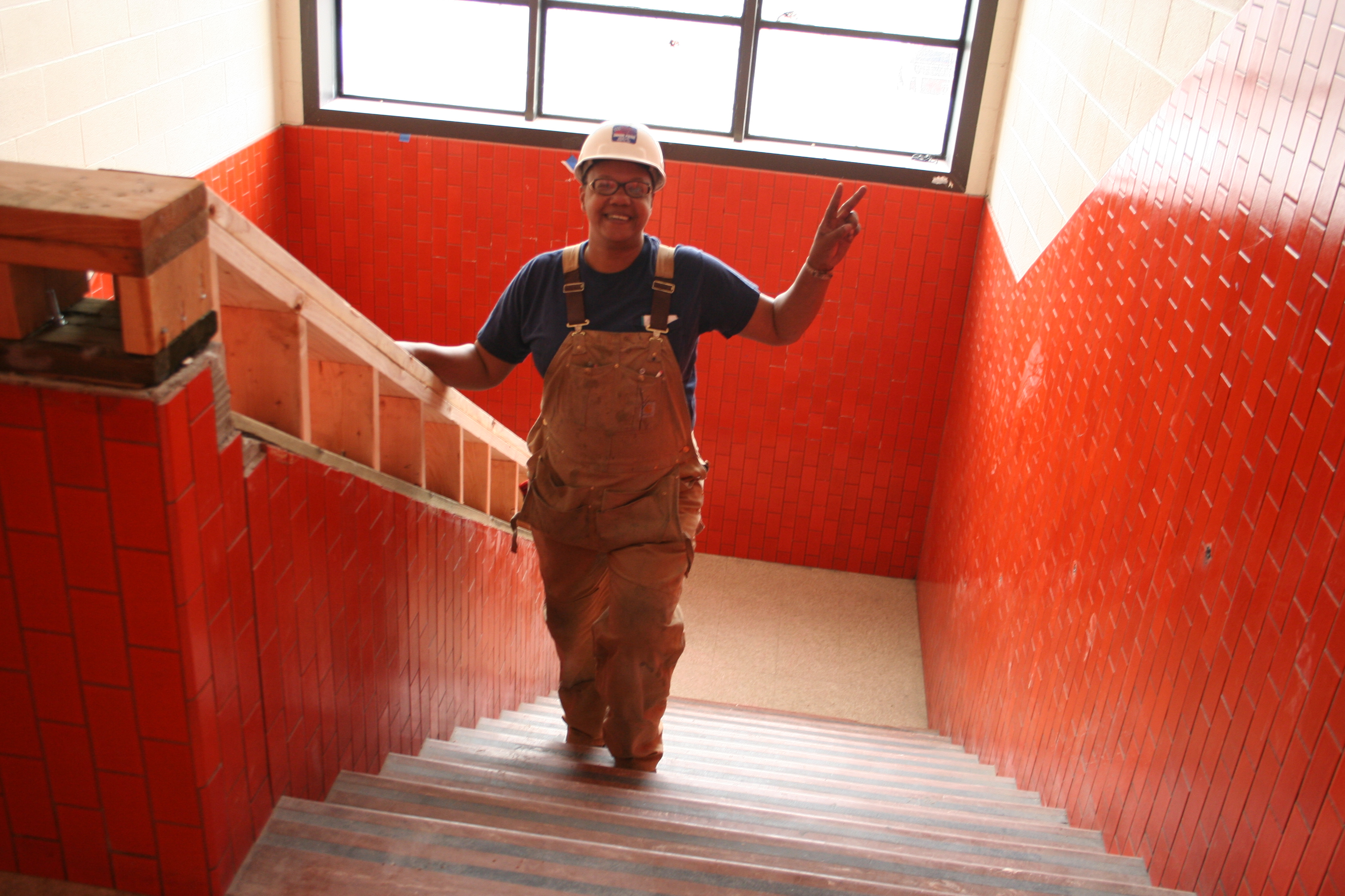 When she got on the job she was surprised to find an atmosphere of chaos. It seemed like everyone was yelling all the time. She came from a teaching environment where, she says, there is a lot of support and repetition to help you on your journey. In construction, she quickly learned, it was “jump in and make it happen.”