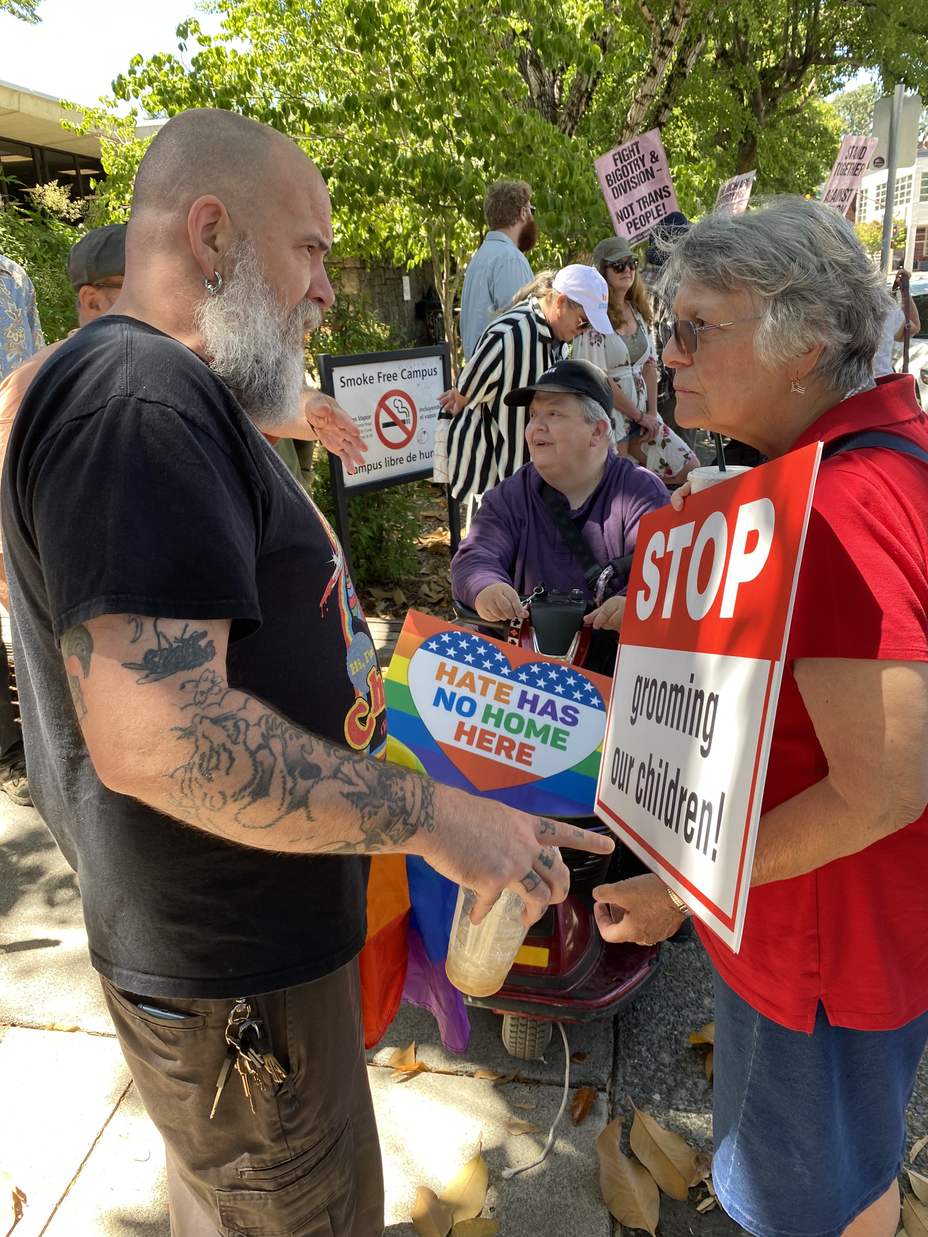 So Gay Pride Day and gay events like drag queen story hour are proliferating all over the country but at the same time our community is under attack in nearly every state. We are lucky to live in California whose state legislature is not at the moment promoting anti-gay bills (although we have fought against many in the past). But even in Sonoma County and around the liberal San Francisco Bay Area, protesters show up at public libraries and school boards with the aim of censoring books and queer programming. Here in Sonoma County the counterprotesters are vigilant and nonviolent. No events have been shut down by the book burners yet.