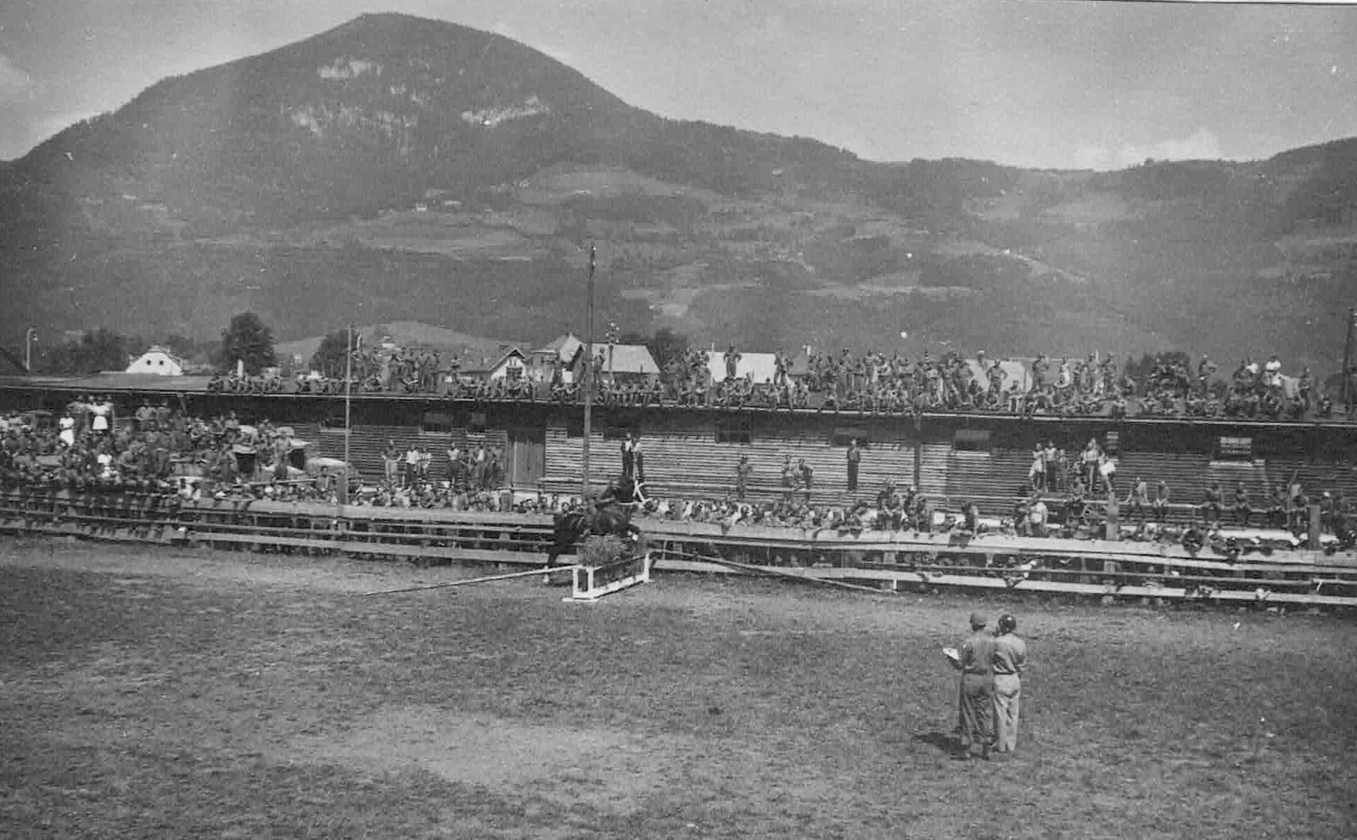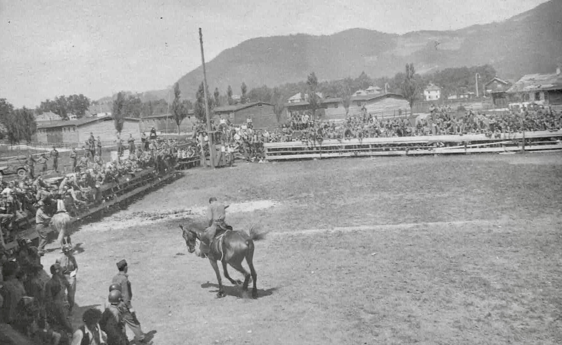 For almost ten weeks—from May 4 to July 13, 1945—the 3rd Division enjoyed a rare stretch of life without combat in and around Salzburg. To help soldiers shift from warfighting to occupation duty, the army quickly organized a full slate of sports and recreation. The Salzburg rodeo that Flo photographed was likely one of those morale-boosting events.