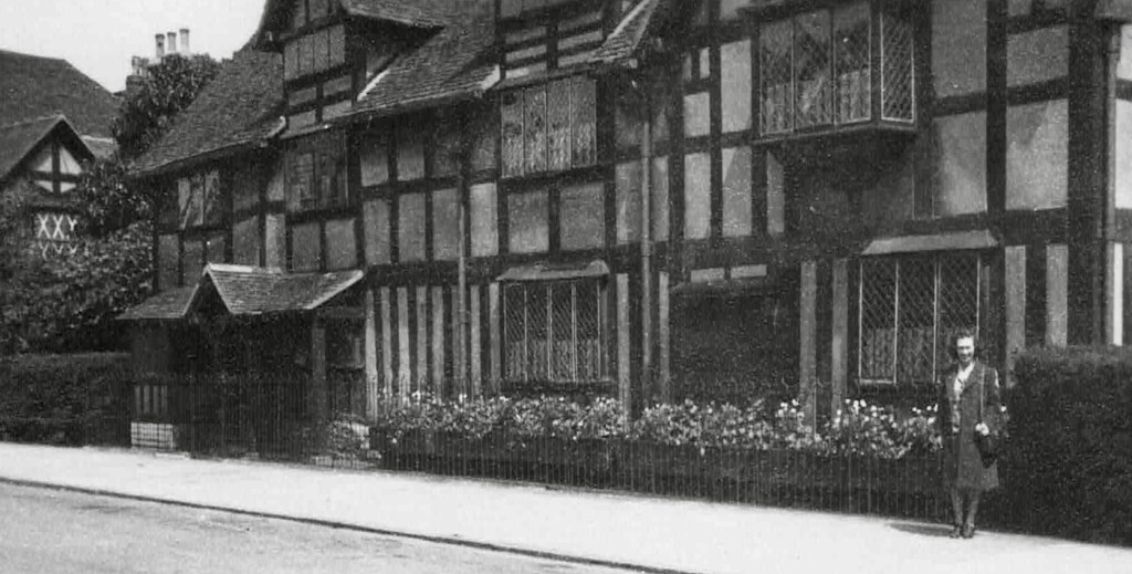 Stratford-upon-Avon, as we all know, is the 16th-century birthplace and burial place of William Shakespeare. The medieval market town in England’s West Midlands is about 100 miles northwest of London. The Royal Shakespeare Company still performs his plays in the Royal Shakespeare Theatre and adjacent Swan Theatre on the banks of the River Avon. Flo visited in mid-June, 1945.