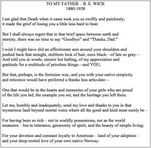 We emailed each other a couple of years ago about shared genealogy. I am one of the Wick relatives (along with Shelly Harris). My grandfather from Klokkervik was Ben Wick (Bernt Evensen).
