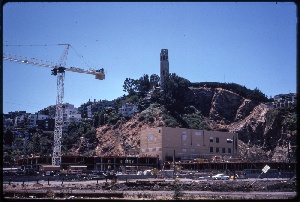I worked for Plant Bros. of San Francisco in the early Seventies. After a probation period, they sent me to a jobsite that had just begun, in the shadow of Telegraph Hill, right by the waterfront. They had to completely overhaul an old grain warehouse and convert it into an upscale office building. The location was great – you could walk at lunch-break over to the wharves, or just sit in a vacant lot and look at the Bay. And the building was interesting, especially as we began to mine our way into it. It was a remnant of the industrial past of San Francisco’s waterfront, a brick five-story warehouse with rugged interiors. We had to earthquake-proof it, tear up flooring, destroy the old freight elevator shaft, and then frame up the new sets of offices. The flooring had been laid when mahogany was cheap, so we were cutting through two tongue-and-groove, inch-thick mahogany floor layers. We burned out blade after blade of our skilsaws and spent weeks with crowbars ripping out and dumpstering the wood. Then re-flooring it with heavy plywood.