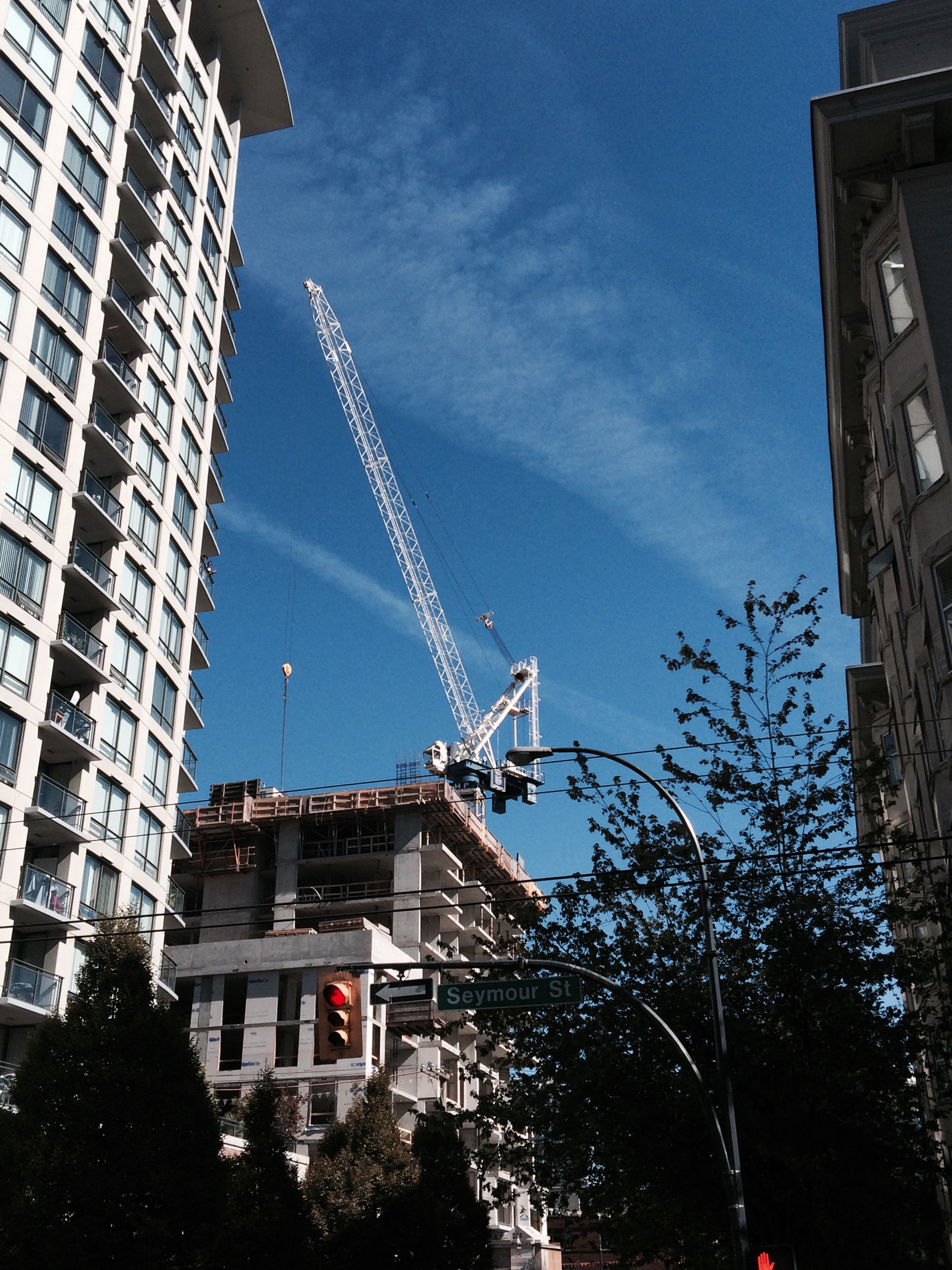 Downtown Vancouver is full of big cranes. Lots of new construction.